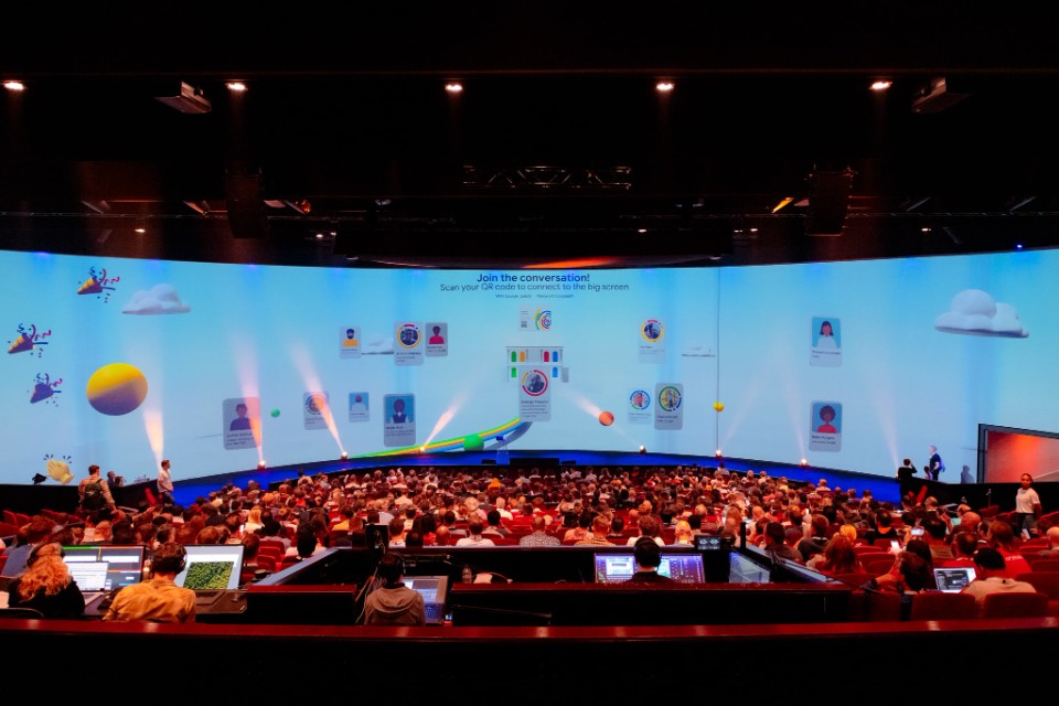 "Tijdens de plenaire sessies maakten we indruk met ons Interactive Digital Decor (IDD). Geen saaie presentaties op een plat LED-scherm, maar een driedimensionaal, interactief decor waar het publiek onderdeel van wordt. En zo toonden we op een gebogen projectiescherm van 500 m² de nieuwste Google Cloud-innovaties in 3D."