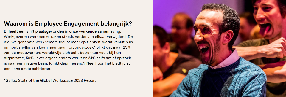 "Laat ik het zo zeggen: employee engagement trajecten zonder activatie, events of fysieke ontmoetingen...dan mis je een essentiële menselijke en emotionele laag en ga je je doelstellingen moeilijk bereiken. Het is niet voor niets dat veel grote organisaties het remote werken weer aan het terugdraaien zijn..."