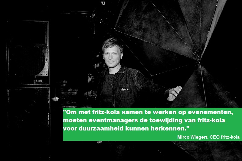 "Om met fritz-kola samen te werken op evenementen, moeten eventmanagers de toewijding van fritz-kola voor duurzaamheid kunnen herkennen. De voorkeur gaat uit naar partners die onze waarden van openheid en tolerantie delen en een positieve impact hebben. Het aanpassen van de logistiek achter de bar voor glazen flessen en kratten is misschien een verandering, maar het zorgt voor de meest verse kola voor de consument omdat de gebruikte flessen kleiner zijn en het ondersteunt een duurzamere benadering van afvalvermindering."