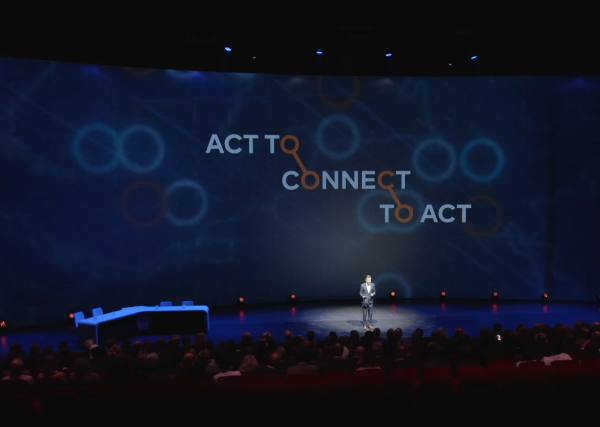 Het concept is letterlijk verwoord in de titel van de manifestatie: Act to Connect, Connect to Act. Het verbinden en in actie komen. Er is gekozen om dat in manifestatievorm te doen in Theater Amsterdam. We wilden wegblijven van de obligate lezingen met PowerPoint presentaties. Het verbinden moest vooral beleefd worden. Het enorme scherm van 50 meter breed en 10 meter hoog in Theater Amsterdam was dan ook het perfecte canvas om die verbinding tot uitdrukking te brengen.