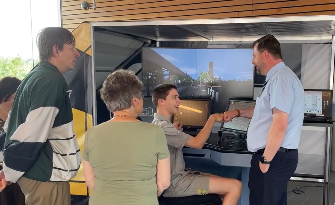 De simulator reageert direct zodra de machinist vertrekt, remt of toetert. Op een groot scherm is het treintraject te zien waar de trein over rijdt. Van Dooren: “Drie kleinere schermen tonen alle knoppen en systemen die je nodig hebt om de trein te controleren. Denk aan het bedienen van de stroomafnemer, het openen en sluiten van deuren en hoe hard je mag rijden. Net als een echte trein beschikt de simulator ook over een dodemanspedaal. Bedien je deze niet op tijd, dan volgt een noodremming. In de simulator kunnen we de dodeman uitzetten, zodat mensen die voor het eerst rijden ook even kunnen wennen.”
