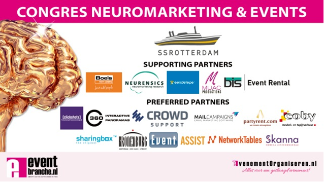 Congres Neuromarketing en Events Geinteresseerd geraakt of getriggerd? Maandag 4 september is op het ss Rotterdam het Neuromarketing en Events congres. Vanuit de theorie én zeer interessante laatste ontwikkelingen, maken we de koppeling naar de evenementen, eventmarketing en live communicatie. Het congres zelf duurt van 13.00 tot 17.30 en daarna bent u ook nog eens welkom op het EventBranche netwerkevenement. Nima: 4 PE-punten. >> INSCHRIJVEN EN MEER INFO