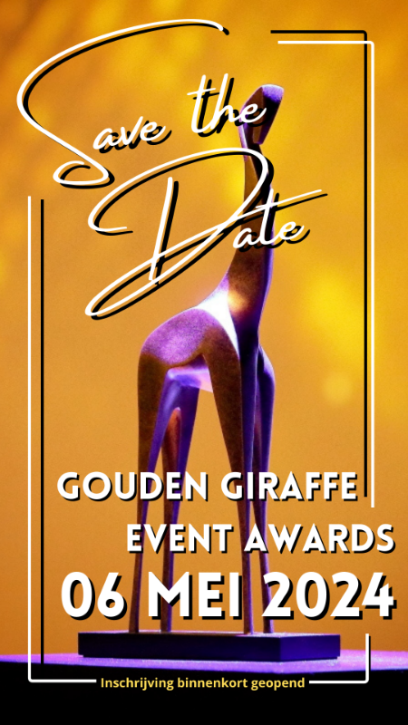 De Gouden Giraffe Event Awards 2024 wordt komend jaar georganiseerd op maandag 6 mei 2024. Die dag komen weer vele honderden marketeers, communicatieprofessionals en branchegenoten naar dé awardshow voor de allerbeste live communicatie en experience marketing. Zeer binnenkort maken we de verrassende locatie bekend.
